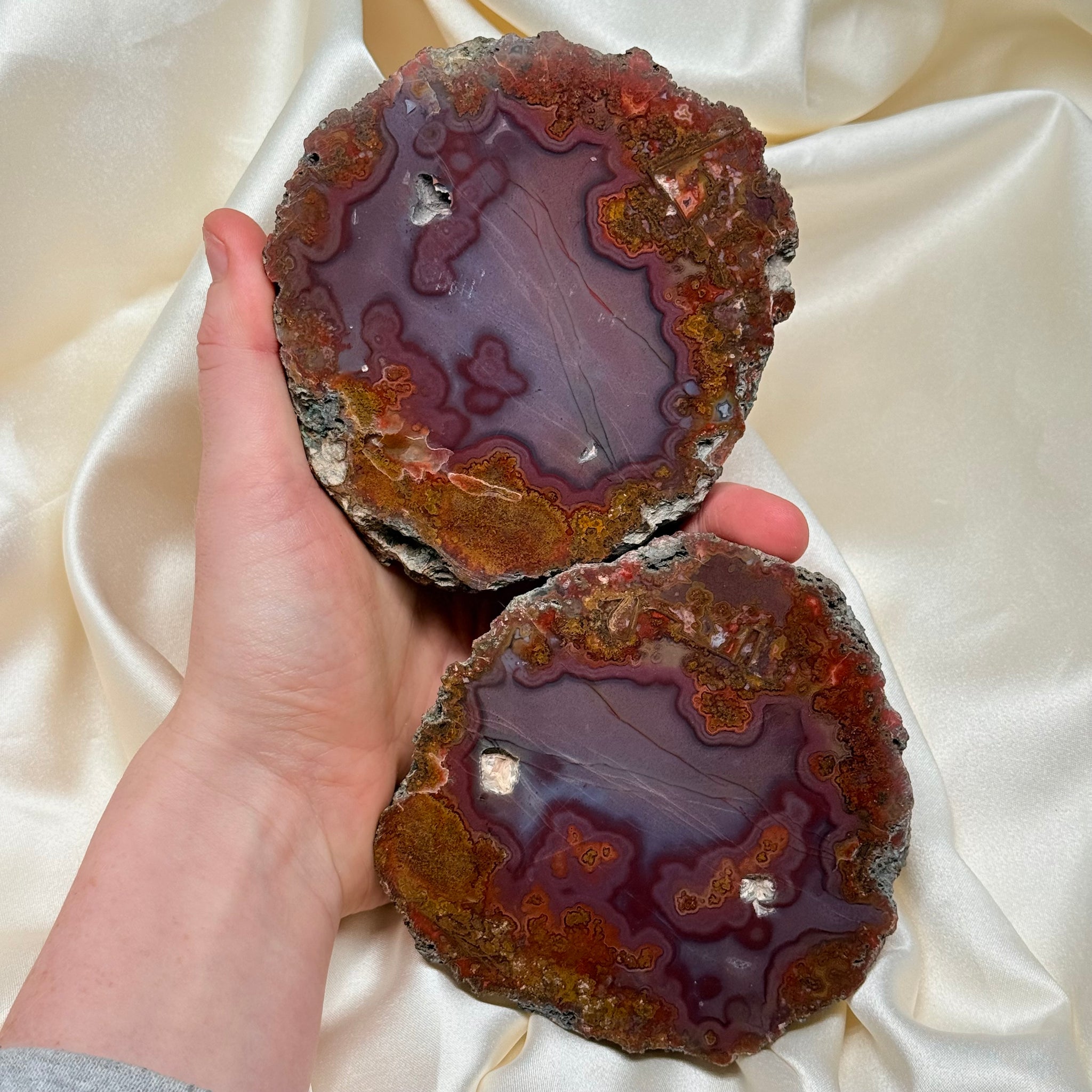 Listing is for pictured Agate Pair from Morocco. Please note any surface “imperfections” such as cracks/chips/scratches/caves that are common in natural crystals and may be present.