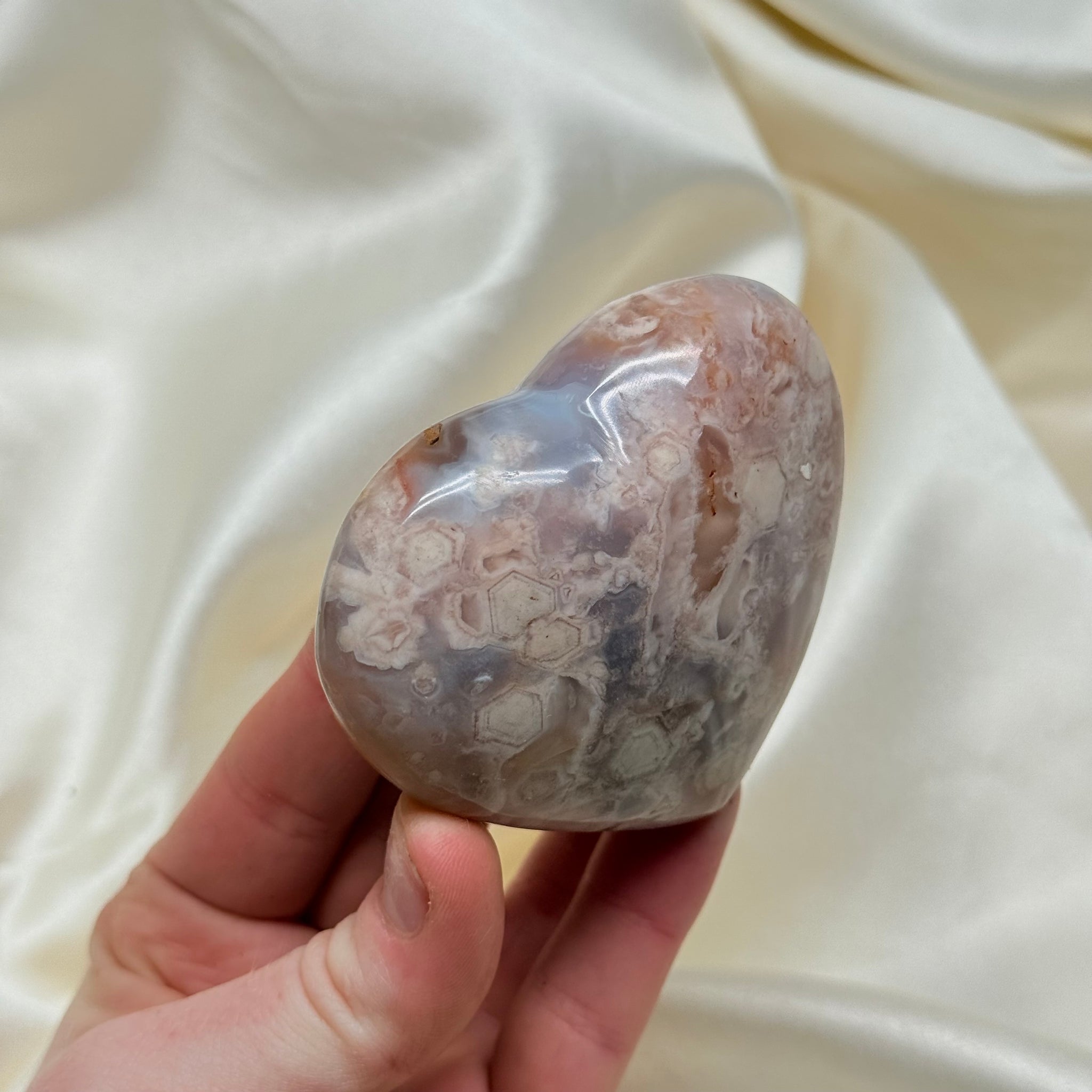 Listing is for pictured Flower Agate Heart from Madagascar. Please note any surface “imperfections” such as cracks/chips/scratches/caves that are common in natural crystals and may be present.