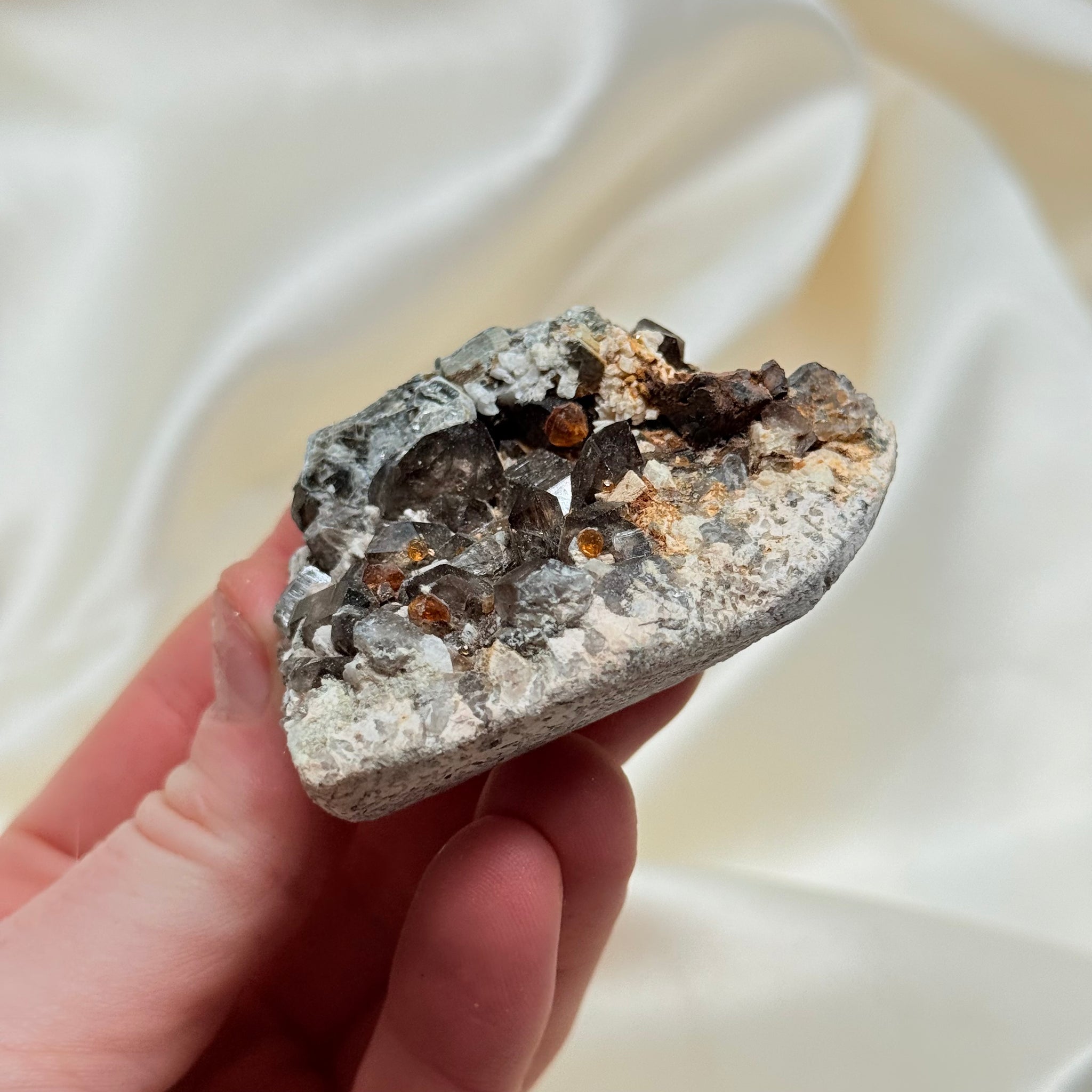 • Load image into Gallery viewer, Spessartine Garnet on Smoky Quartz