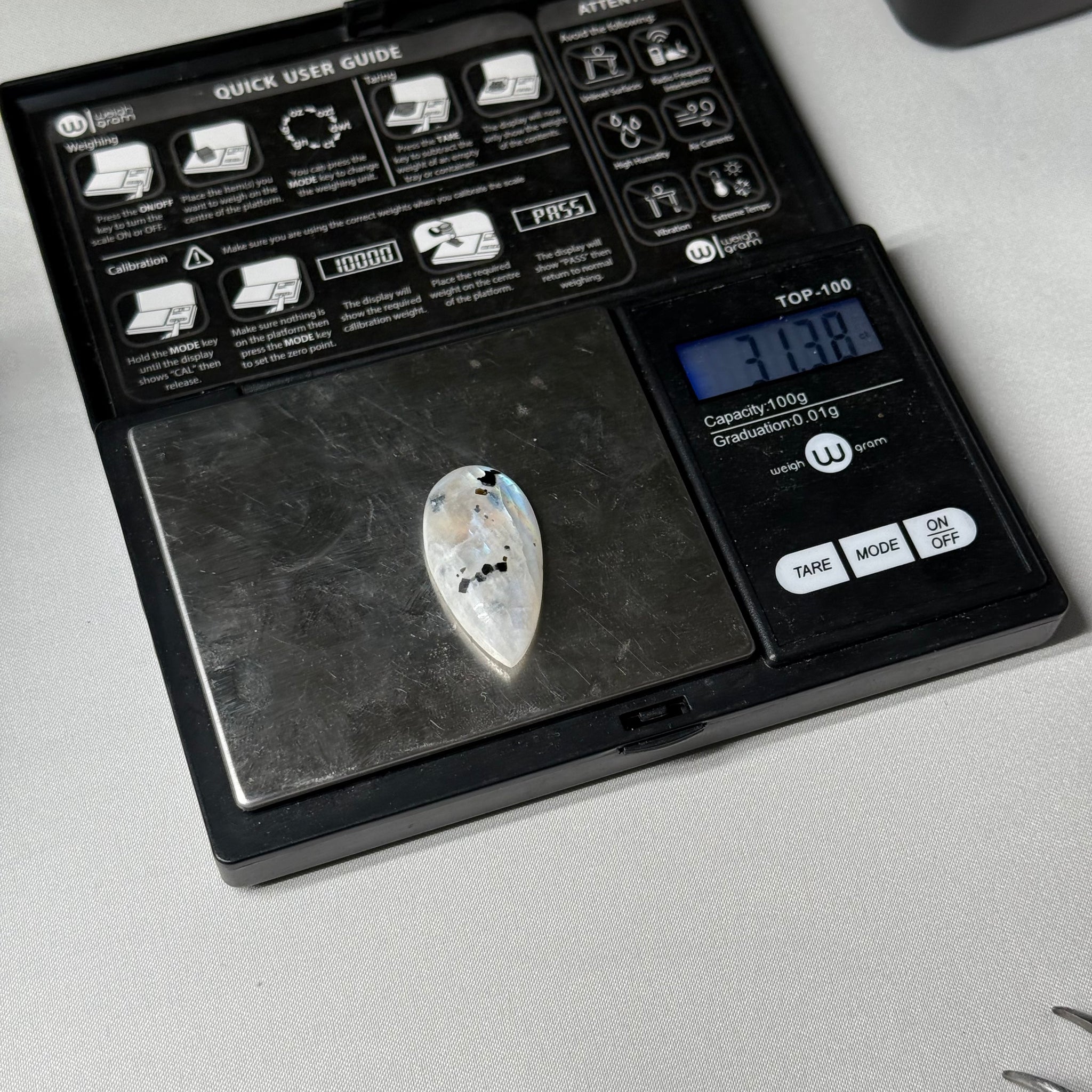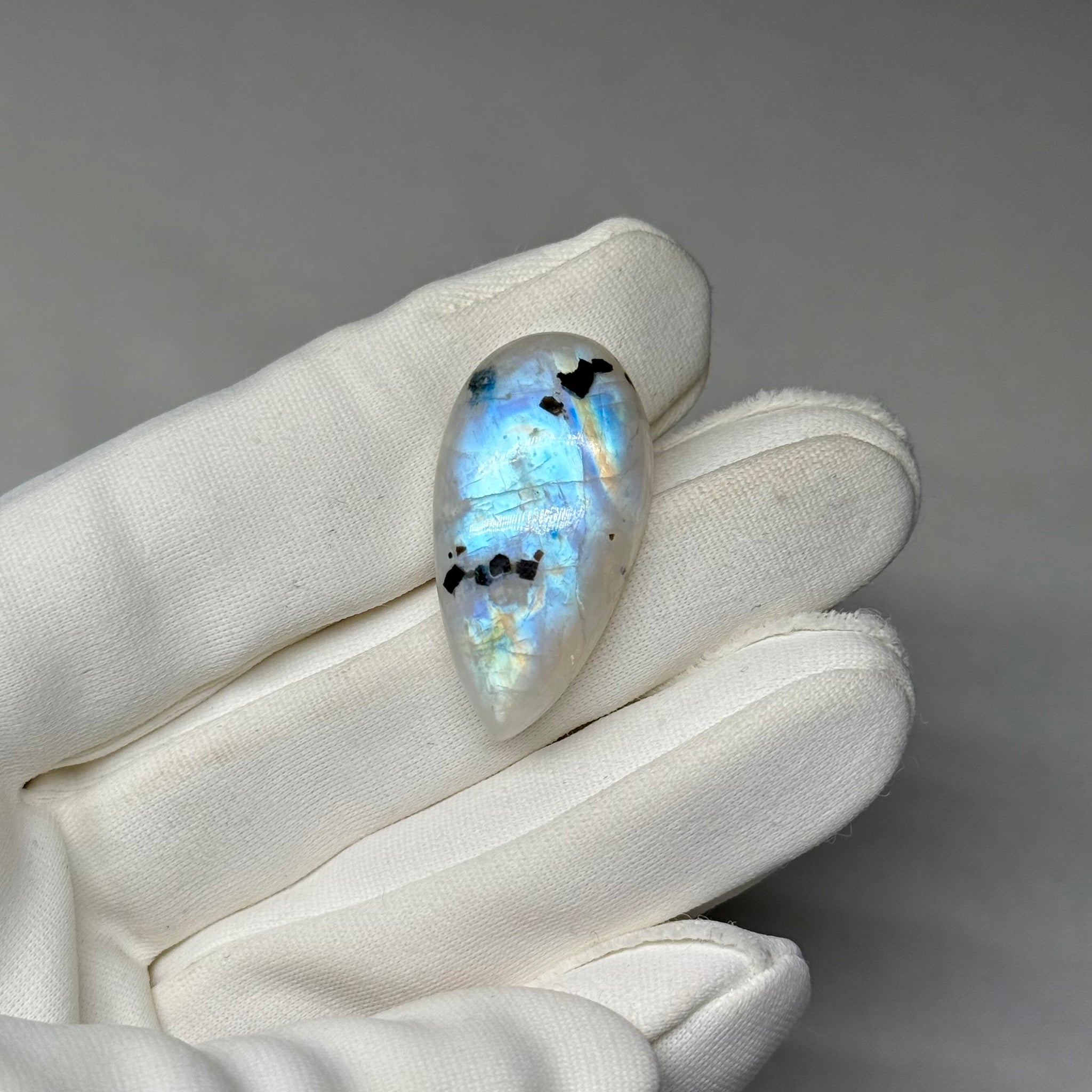 Rainbow Moonstone Cabochon with Tourmaline 31.38ct