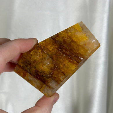 Natural Honey Citrine Freeform with Rainbows on Stand
