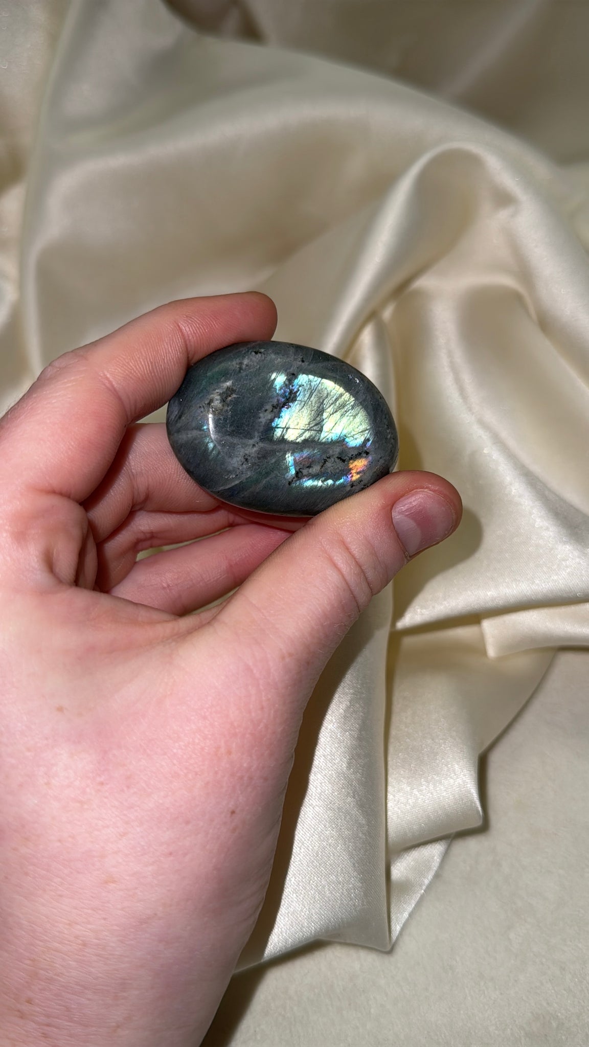 Listing is for pictured Labradorite Palmstone from Madagascar. Please note any surface “imperfections” such as cracks/chips/scratches/caves that are common in natural crystals and may be present.