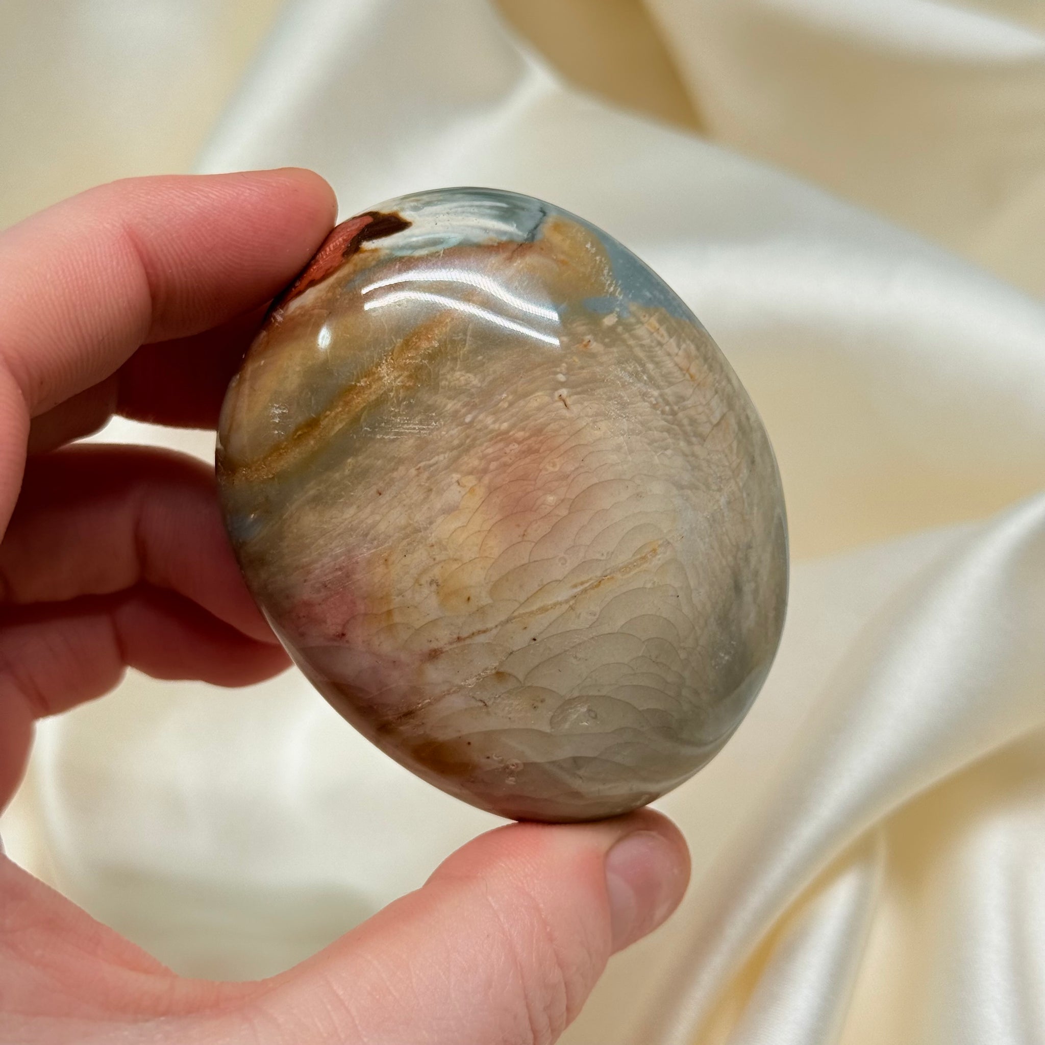 Listing is for pictured Polychrome Jasper Palmstone from Madagascar. Please note any surface “imperfections” such as cracks/chips/scratches/caves that are common in natural crystals and may be present.